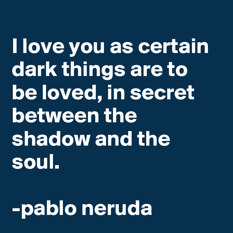 I Love You As Certain Dark Things Are To Be Loved In Secret Between The Shadow And The Soul Pablo Neruda Post By Nessarae On Boldomatic