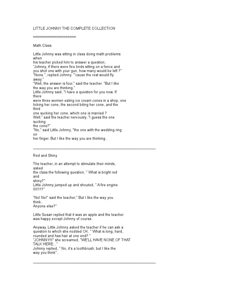 Little Johnny Jokes Funny List Of Little Johnny Jokes Dirty